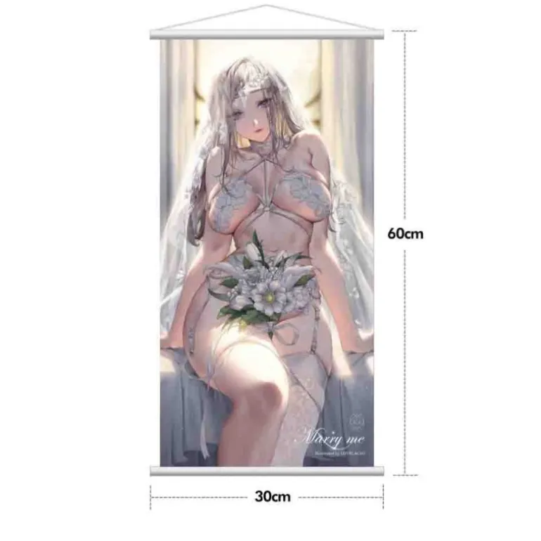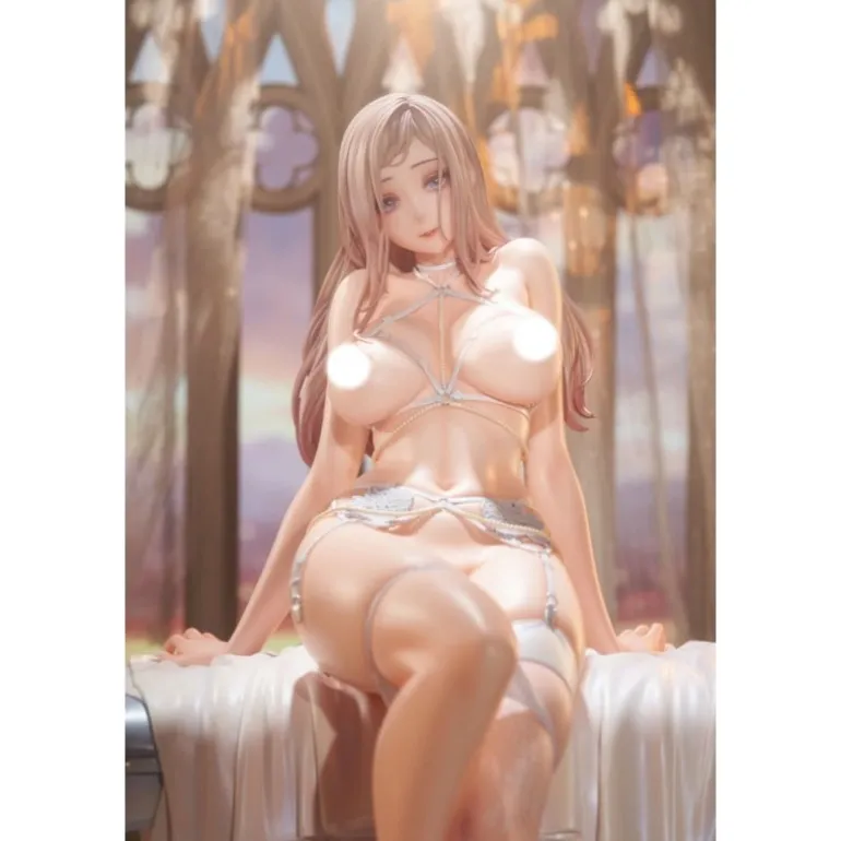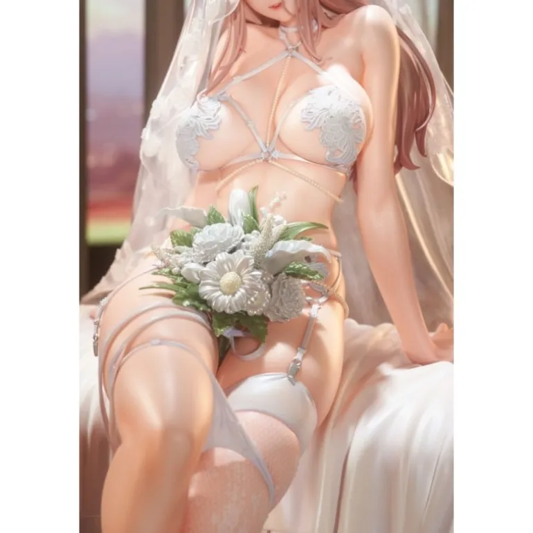 Explora la delicadeza de esta estatua PVC 1/4 Marry me, ilustrada por LOVECACAO. Con un tamaño aproximado de 31 cm, esta pieza es una auténtica obra de arte en el mundo del manga y anime. La figura presenta a una elegante joven sentada en un banco cubierto con un paño blanco, luciendo un conjunto íntimo decorado con delicados detalles florales, y un velo transparente que añade un toque romántico.