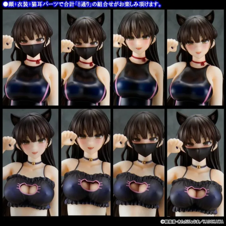 Descubre la elegante estatua de Konata de la serie «Mishiranu Joshikousei ni Kankinsareta Mangaka no Hanashi», fabricada con gran detalle por Kaitendoh en PVC. Esta figura de 26 cm ofrece una combinación única de trajes, desde un bañador competitivo hasta un seductor conjunto de lencería de gato. Incorpora orejas y cola de gato, proporcionando diversas opciones de exhibición para los coleccionistas más exigentes.