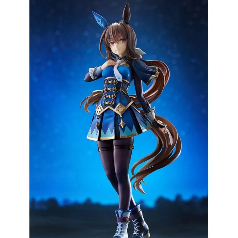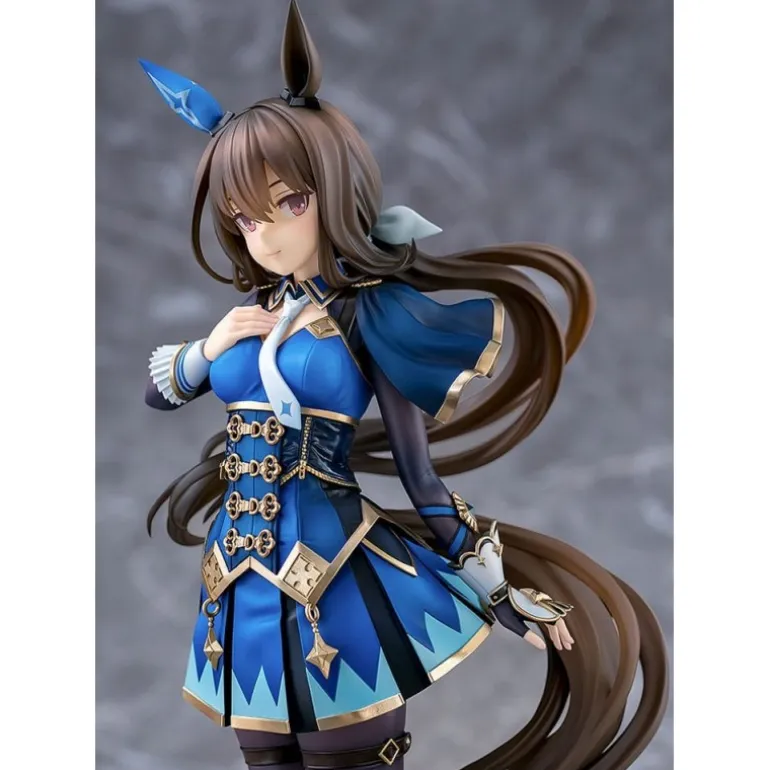 Descubre la estatua de Admire Vega de la popular serie Uma Musume Pretty Derby. Esta figura, fabricada en PVC, mide aproximadamente 26 cm y captura con detalle la esencia del personaje. Con un acabado de alta calidad, resaltan sus vibrantes colores azul y dorado, junto con su cabello marrón detalladamente esculpido.