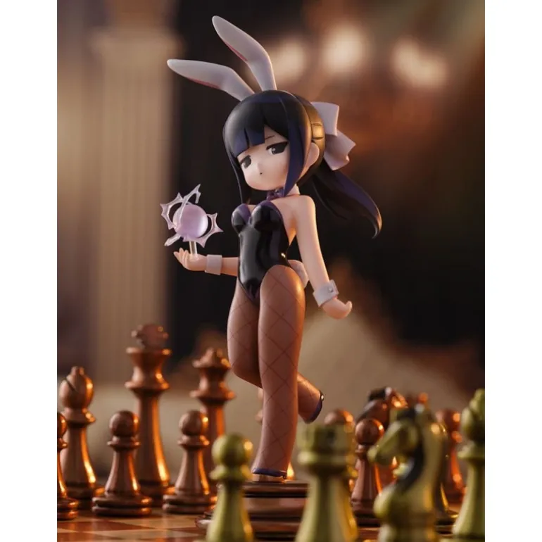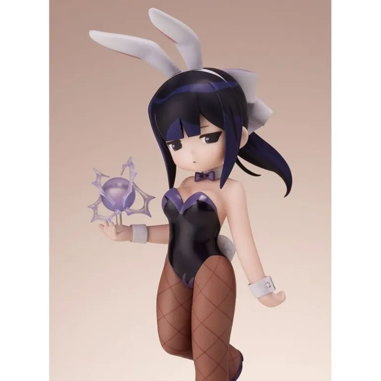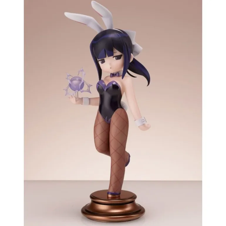 La figura muestra a Narberal Gamma con un atuendo de coneja, incluyendo un elegante traje negro con acabados en tonos morados, medias de red detalladas y orejas de conejo. Destaca asimismo su expresión serena y su postura segura, que la convierten en una pieza única para los fans y coleccionistas del manga y anime.