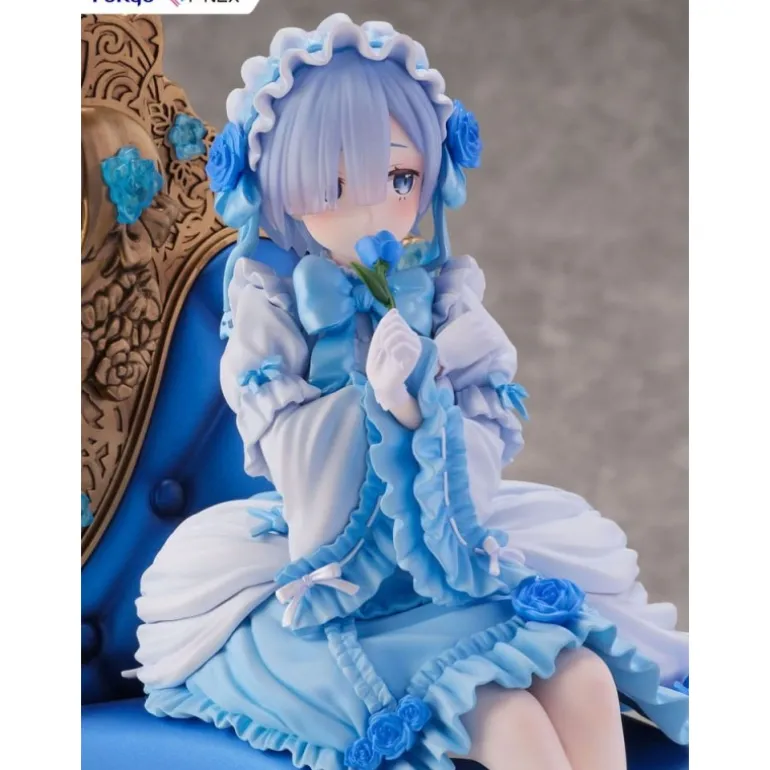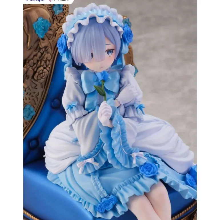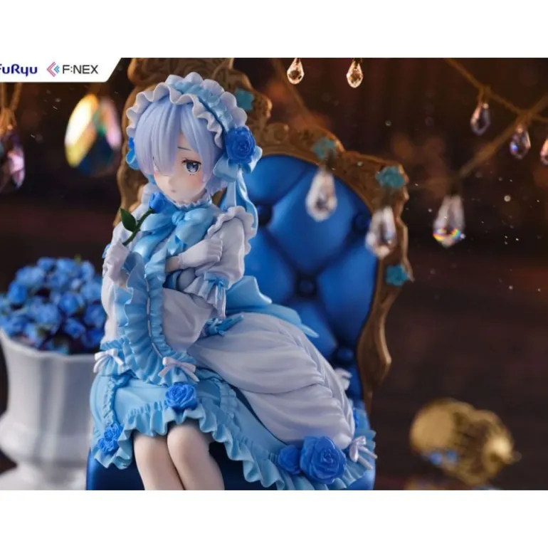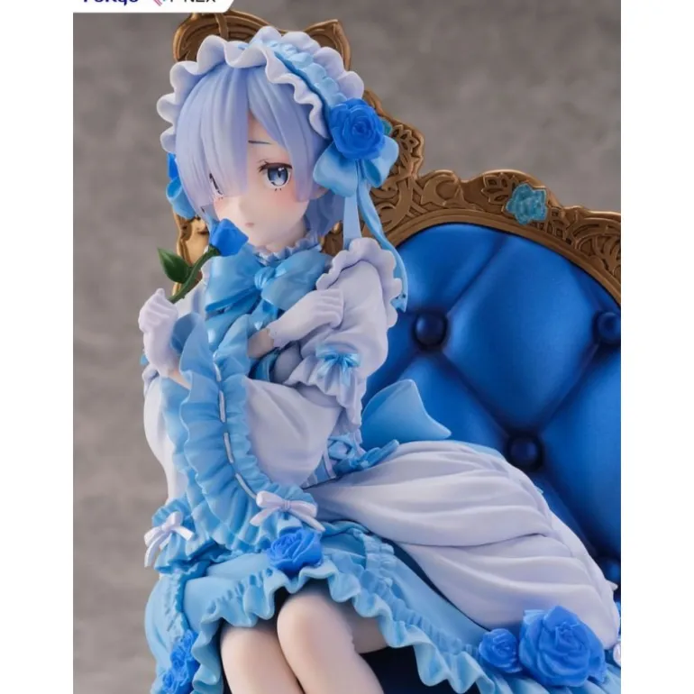 Descubre la mágica elegancia de la estatua de Rem Gothic Ver. de Re:ZERO -Starting Life in Another World. Este cautivador artículo de coleccionista, fabricado por Furyu, presenta a Rem sentada en un majestuoso sillón azul con detalles dorados, luciendo un exquisito vestido gótico en tonos celestes y blancos adornado con rosas.