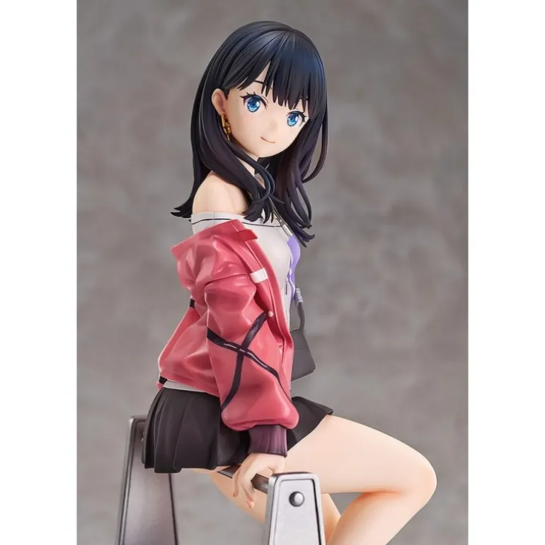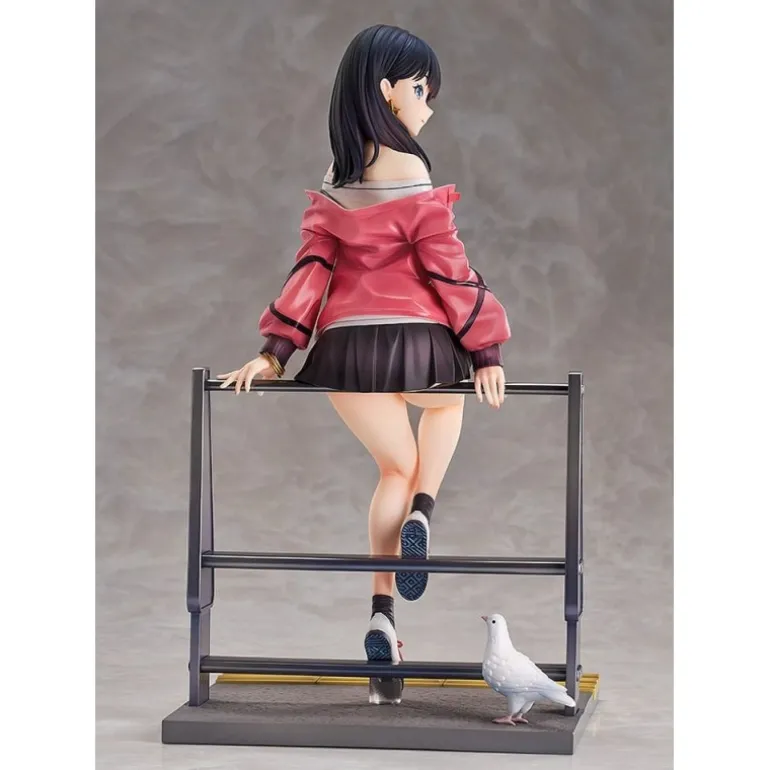 Explora el detalle y la elegancia de la Estatua Rikka Takarada Blue Sky Station del universo Gridman. Esta figura de 21 cm está fabricada en PVC de alta calidad por Good Smile Company, destacando por su precisión en los acabados. Rikka está representada sentada en una estructura de metal, vestida con una chamarra rosada semiabierta que deja ver una camiseta morada, combinado con una falda corta y zapatillas deportivas. Su pose relajada y la inclusión de una paloma en la base añade un toque de dinamismo y realismo a la escena.