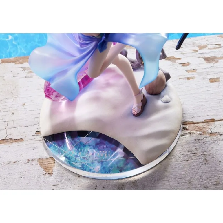 Descubre la elegante estatua de Rin Shirane Beach Shootout de Little Armory, una obra maestra de 27,6 cm fabricada en PVC por el renombrado fabricante Mimeyoi. Esta figura resalta por su exquisita atención al detalle, presentando a Rin en una pose dinámica y playera, con un traje de baño verde azulado complementado por un pareo translúcido que ondea al viento. Sus accesorios incluyen un arma ligera y un inflable rosa con motivos florales que aportan un toque veraniego. La figura se sostiene sobre una base decorada que evoca la arena de la playa y pequeños detalles naturales. Con un peso de 1,3 kg, es una pieza robusta entregada en una caja con ventana diseñada para coleccionistas que desean exhibirla con orgullo.