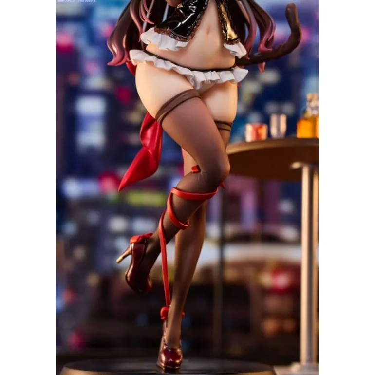 La figura muestra a Ruhuna-chan en una postura sugerente, vestida con un atuendo de estilo gótico y orejas de gato. El detalle en su cabello oscuro y su expresión facial aportan una sensación de realismo y elegancia. Además, como bono exclusivo, se incluye un pergamino mural de Genga, que complementa a la perfección esta pieza única.