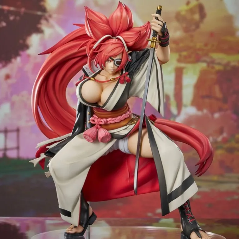Descubre la impresionante estatua de PVC de Baiken de 23 cm del popular anime ‘Guilty Gear Strive’. Esta figura destaca por su detallado diseño y colores vibrantes. Viste un kimono con detalles en rojo y blanco, con un cinturón rosa que realza su figura. Su cabello, de un llamativo color rojo, está cuidadosamente esculpido, añadiendo dinamismo a la postura de combate con su katana desenvainada.