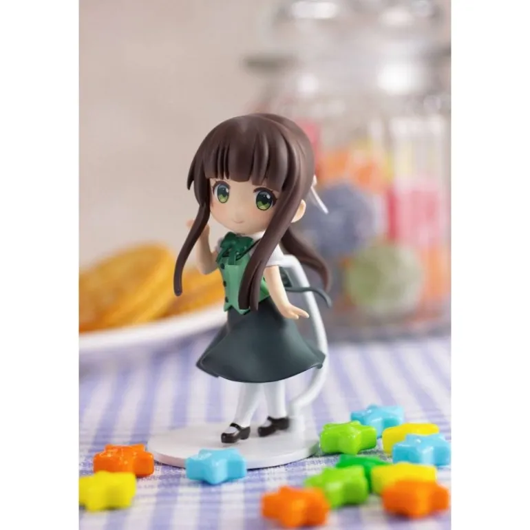 La figura muestra a Chiya con su distintivo uniforme verde y negro, y rasgos delicados que encantarán a los aficionados del anime. Las dimensiones de la figura son 9 x 13,5 x 12,2 cm y su peso de 77 gramos la hace perfecta para exhibir en cualquier espacio. Además, viene con accesorios en una elegante caja con ventana, lo que la convierte en un regalo ideal para cualquier coleccionista.