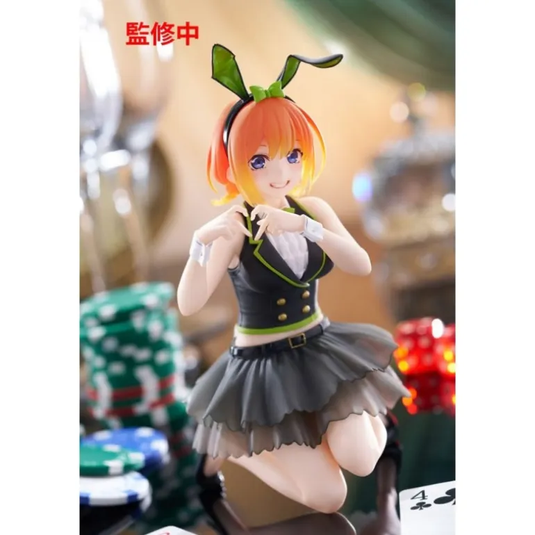 Su cabello anaranjado y su expresión alegre aportan vida y dinamismo. El conjunto incluye orejas de conejo, complementando su look con un toque divertido y coqueto. Fabricada por Taito Prize, esta estatua es un producto con licencia oficial del reconocido manga y anime The Quintessential Quintuplets.