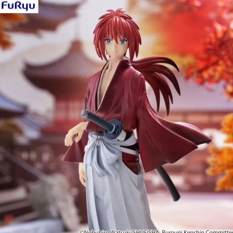 Descubre la elegante figura de Kenshin Himura, protagonista de la icónica serie Rurouni Kenshin (Samurai X). Esta estatua de PVC, elaborada por el renombrado fabricante Furyu, mide aproximadamente 19 cm y captura a Kenshin con su característico kimono rojo y hakama blanco, mientras su katana descansa firmemente a su lado.