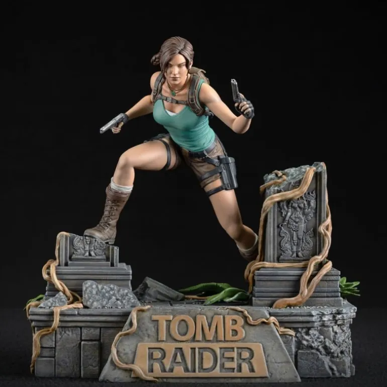 Sumérgete en el mundo de Tomb Raider con esta impresionante estatua de Lara Croft de 24 cm, fabricada en PVC por Dark Horse. Esta detallada figura captura a Lara en una pose dinámica, preparada para la aventura, con sus icónicas pistolas en mano y vestida con su clásico top verde y shorts marrones. La base se asemeja a un antiguo templo en ruinas, con detalles de enredaderas y motivos arquitectónicos que completan la ambientación. La estatua viene en una caja con ventana, ideal para coleccionistas que deseen exhibirla sin sacarla de su empaque original.