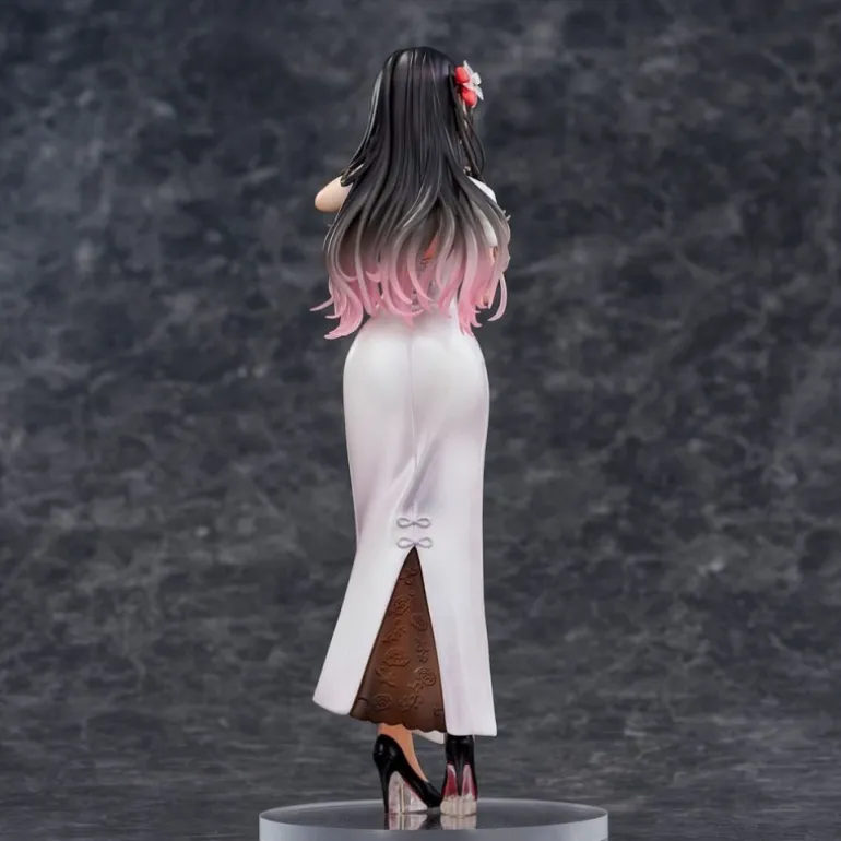 Mai Okuma viste un deslumbrante vestido chino blanco que resalta su delicada figura. La atención al detalle en su cabello, adornado con una flor, y los sutiles tonos que se degradan hacia el rosa en sus puntas, capturan a la perfección su esencia. Completa con una base, esta figura es una pieza imprescindible para cualquier coleccionista de manga y anime.