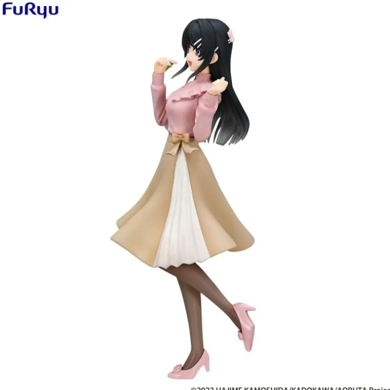Descubre la encantadora estatua de PVC de Mai Sakurajima de la serie «Rascal Does Not Dream of Bunny Girl Senpai». Esta figura destaca por su detallado diseño y su fiel representación del personaje en un elegante traje de primavera. Mai luce un blusa rosa con volantes y una falda beige con detalle plisado que le otorgan un aire delicado y sofisticado. Complementando su atuendo, lleva medias oscuras y zapatos rosa, mientras su cabello negro se decora con un lazo en forma de conejo en la parte trasera. Fabricada por FuRyu, esta estatua mide aproximadamente 21 cm de alto con dimensiones de 13,3 x 23,4 x 11,5 cm y un peso de 299 gramos, lo que la hace ideal para exhibirla en cualquier colección de anime.