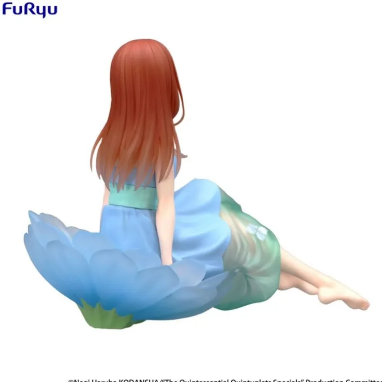 Miku está representada con un vestido azul floral, sentada sobre un pétalo de flor, lo que añade un toque de suavidad y encanto a su apariencia. Su expresión serena y su melena pelirroja complementan a la perfección el diseño. Ideal tanto para regalar como para darse un capricho, esta estatua aporta un toque sofisticado a cualquier colección.