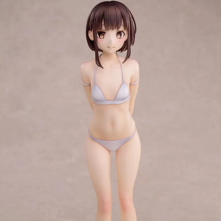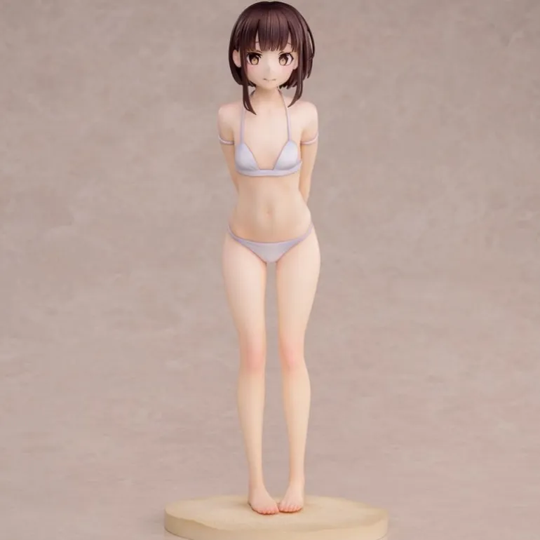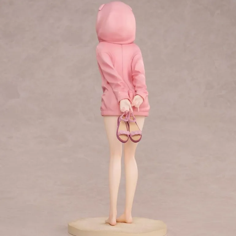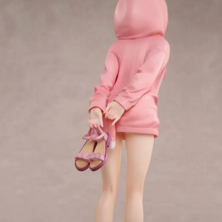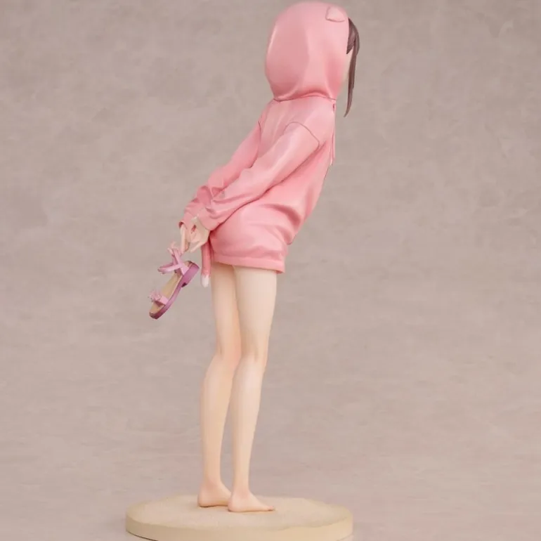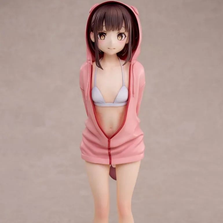 La figura representa a Misaki con un atuendo de bikini, cubierto parcialmente por una sudadera con capucha rosada. La pose y los detalles meticulosos hacen de esta estatua un complemento perfecto para cualquier colección de anime y manga.