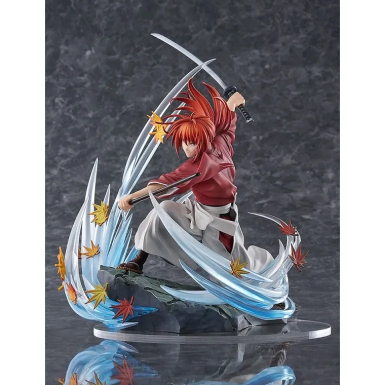 Esta magnífica estatua de Kenshin Himura del anime ‘Rurouni Kenshin: Meiji Kenkaku Romantan Kyoto Douran’ captura la esencia del legendario samurái en pleno movimiento. Fabricada en PVC de alta calidad, esta figura de 27 cm muestra a Kenshin en una pose dinámica, empuñando su espada con determinación. Los detalles son impresionantes, desde su cabello rojo al viento hasta los efectos de hojas y energía que lo rodean, ambientando la escena en un paisaje otoñal.