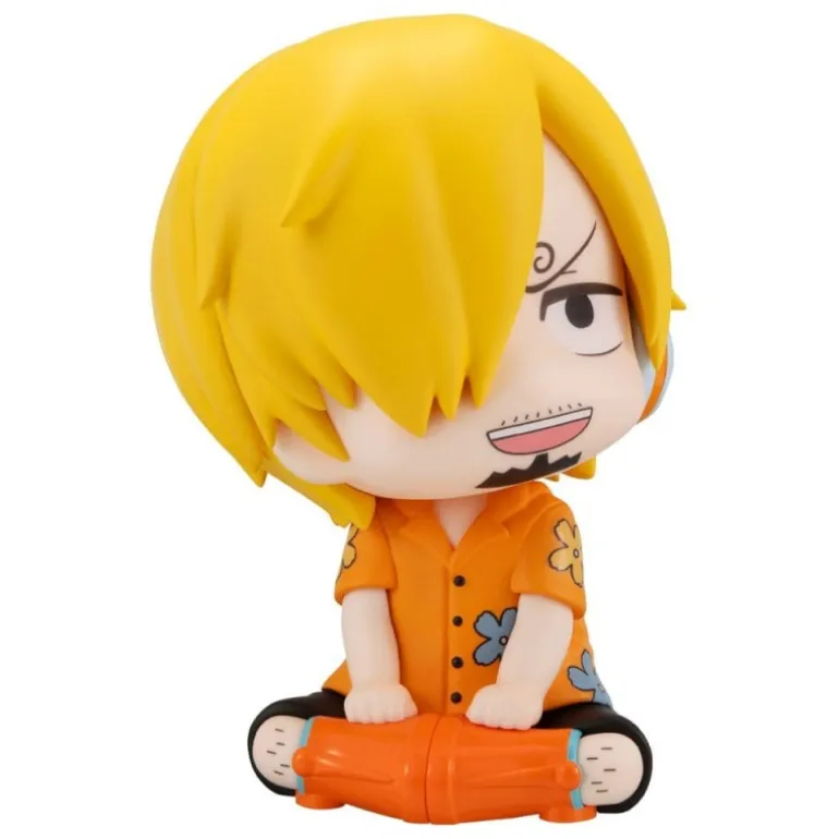 Esta encantadora estatua de Sanji de la serie One Piece muestra al personaje en una adorable pose sentada. Con un diseño chibi, Sanji tiene un cabello rubio brillante característico y una expresión divertida. Viste una camisa naranja con estampado floral y pantalones cortos negros. Los detalles en PVC capturan perfectamente su personalidad única.