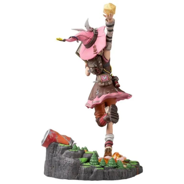 Sumérgete en el mundo de Tiny Tina’s Wonderland con esta detallada estatua de Tina the Bunker Master. Mide aproximadamente 21 cm de altura, fabricada por Dark Horse, y presenta un diseño dinámico y colorido. Tina, vestida con su icónico atuendo de aventuras, levanta un dado dorado con una mano mientras sostiene un libro mágico con la otra. Su ropa combina tonos rosados y marrones, con detalles cuidadosamente esculpidos que reflejan su estilo único.