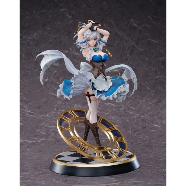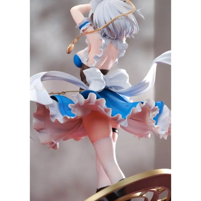 La estatua PVC 1/6 Luna Dial de Sakuya Izayoi de la popular serie Touhou Project es una obra de arte que destaca por su impresionante detalle y calidad. Fabricada por Magi Arts, esta figura de colección mide aproximadamente 32 cm y está hecha de PVC de alta calidad. Presenta a Sakuya Izayoi en una pose dinámica, capturando a la perfección su esencia con su vestido azul y blanco adornado con volantes delicados y detalles dorados. El diseño incluye una base temática con un reloj dorado en forma de esfera que complementa la figura, aportando un toque de elegancia y sofisticación. La estatua viene en una caja con ventana, ideal para exhibir y proteger. Perfecta para cualquier coleccionista de Touhou Project, esta figura es un imprescindible que añade valor a cualquier colección.