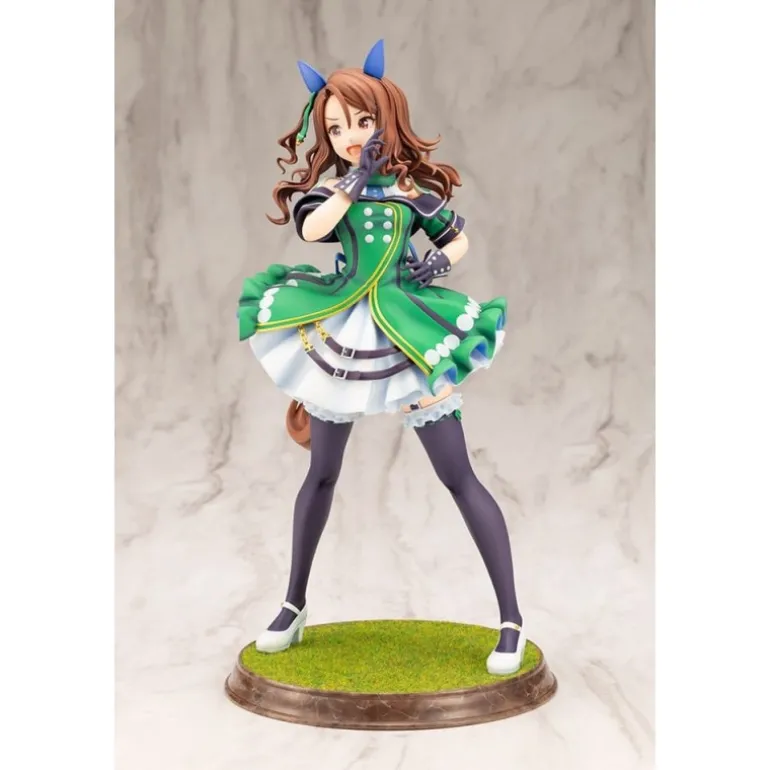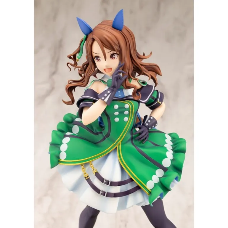 Descubre la elegante estatua de King Halo de ‘Uma Musume Pretty Derby’, una pieza impresionante para cualquier coleccionista de anime. Esta estatua a escala 1/7, fabricada en PVC de alta calidad, mide aproximadamente 25 cm de altura. La figura muestra a King Halo con un atuendo vibrante en verde y blanco, con detalles meticulosos en el vestido, incluyendo volantes y cintas. La postura dinámica y los accesorios cuidadosamente diseñados, como las orejas y el lazo azul, hacen de esta estatua un deleite visual.