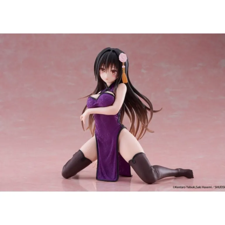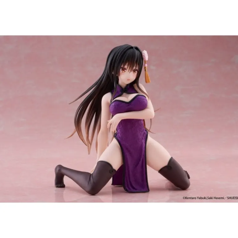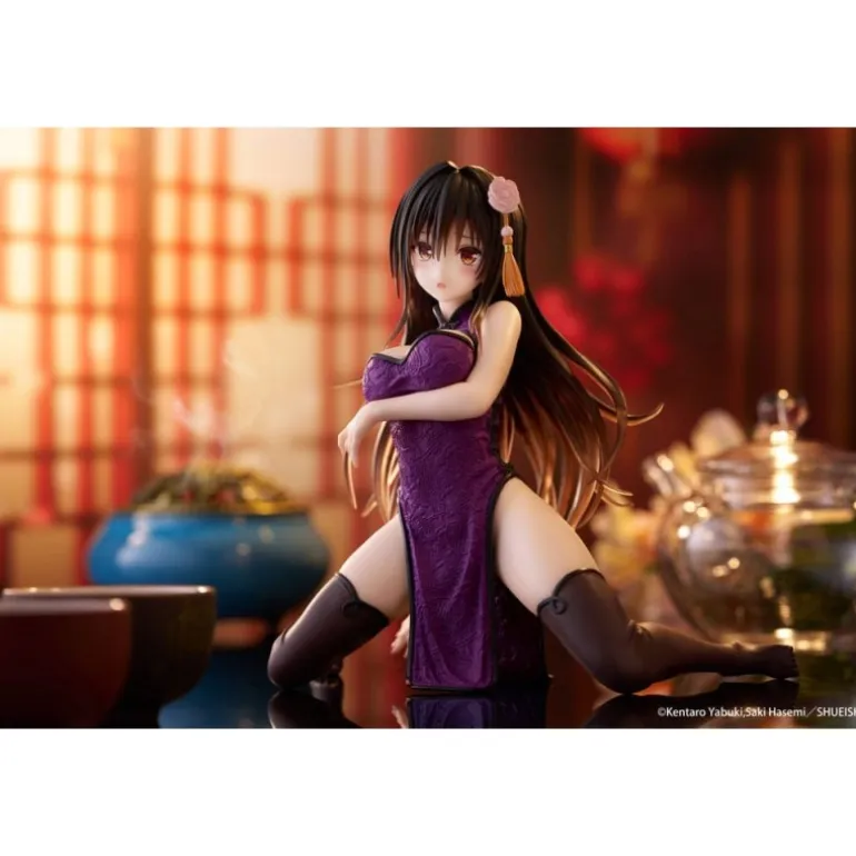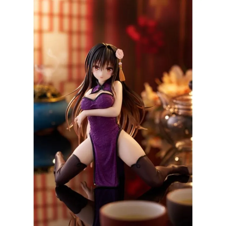 Preciosa estatua de PVC de Yui Kotegawa en su versión vestido chino, parte de la popular serie To Love Ru Darkness. Con una altura de aproximadamente 13 cm, esta figura destaca por su detallado diseño y acabado. Yui está representada con un elegante vestido morado, destacando su postura seductora y elegante. La base y los minuciosos detalles como el adorno floral en su cabello, hacen de esta pieza un excelente añadido para cualquier colección de figuras de anime.