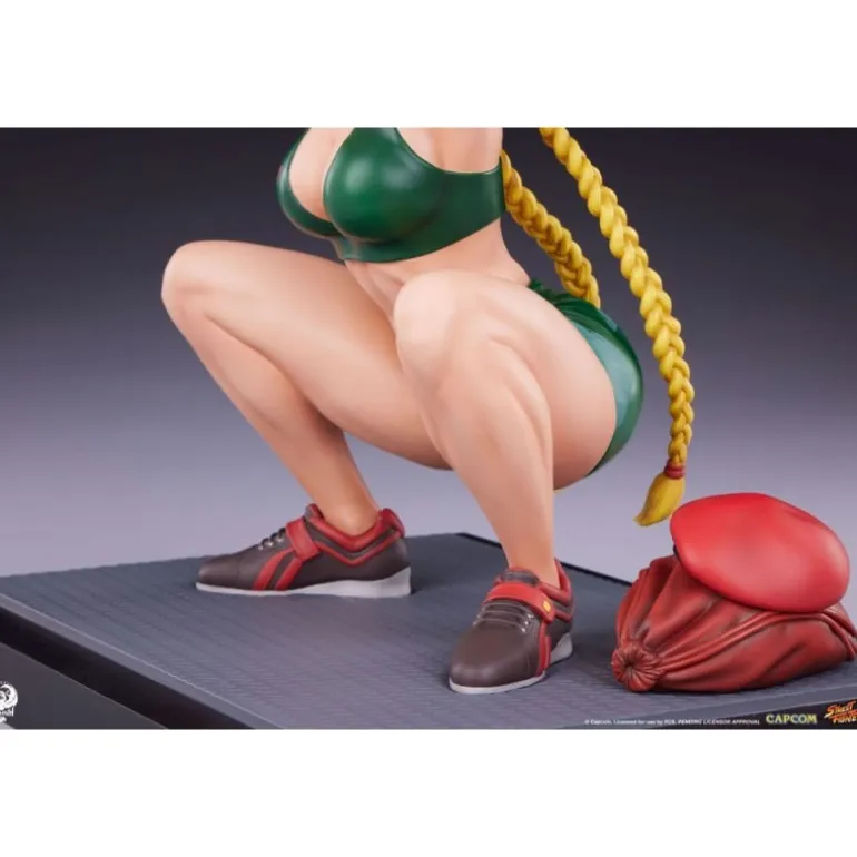 La Estatua Premier Series 1/4 de Cammy captura la esencia de fuerza y determinación del personaje de Street Fighter. Esta impresionante estatua mide aproximadamente 41 cm de alto y está meticulosamente elaborada en poliresina, con detalles pintados a mano que resaltan su fidelidad al videojuego. Cammy se muestra en una poderosa posición de levantamiento de pesas, con un atuendo verde que resalta sus habilidades atléticas.