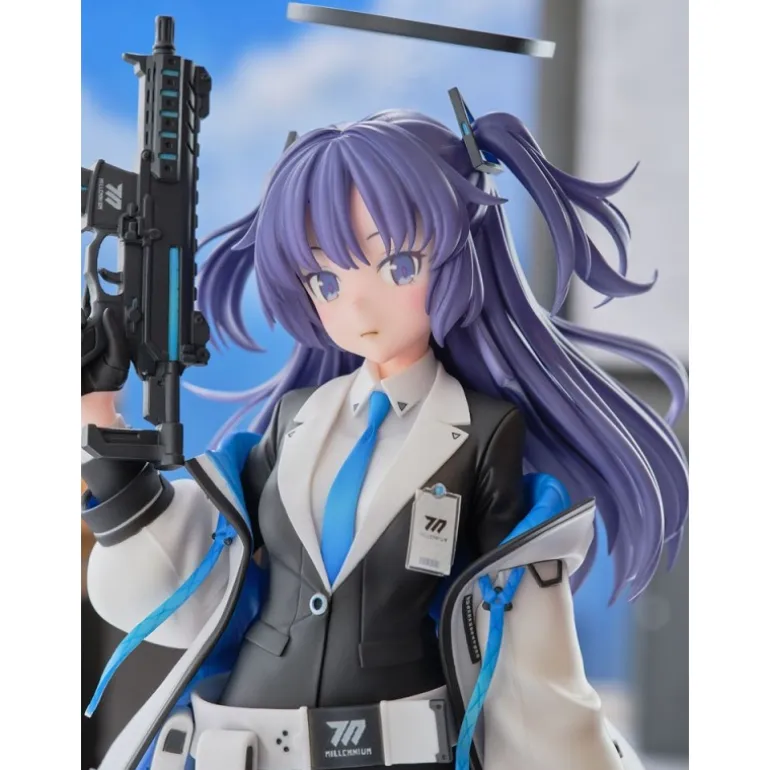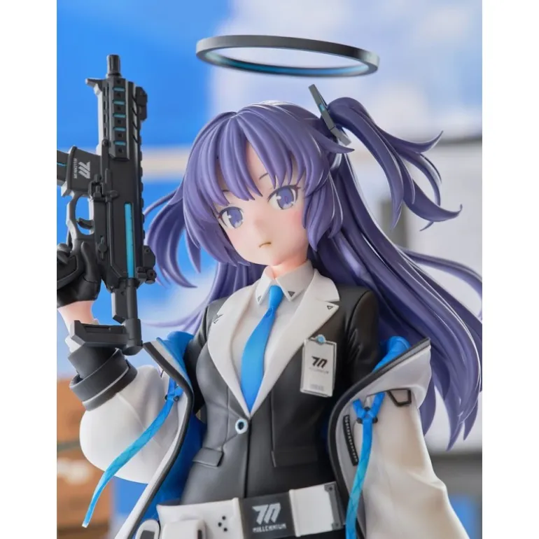 Yuuka se presenta con un traje elegante y colores vibrantes que capturan su esencia. Cada detalle, desde su cabello hasta sus botas, ha sido cuidadosamente esculpido, ofreciendo una interpretación fiel al personaje.