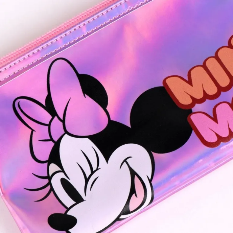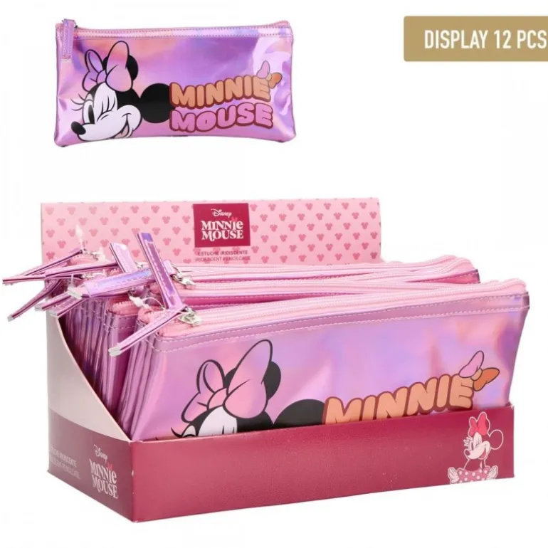 Descubre el encantador Estuche Portatodo Iridiscente Minnie Mouse, ideal para las pequeñas fans de Disney. Este estuche está fabricado en material 100% PU, ofreciendo resistencia y durabilidad. Su diseño iridiscente en tonos rosados aporta un brillo único que captura la atención. En la parte delantera, encontrarás a Minnie Mouse en una ilustración adorable que hará las delicias de cualquier niño.