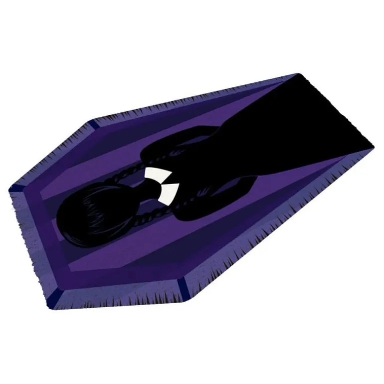 Descubre el Felpudo Dark Side de Wednesday, un artículo imprescindible para los seguidores de esta icónica serie. Este felpudo cuenta con un diseño único que destaca por sus formas geométricas y su paleta de colores oscuros, incluyendo tonos negros y morados profundos.
