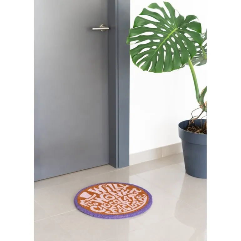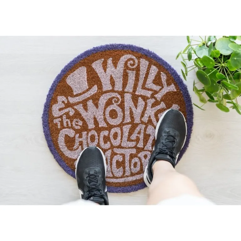 Consigue que todos los que pasen cerca de la puerta de tu casa sonrían cada mañana cuando vean este fantástico felpudo de una de las pelis más míticas, Willy Wonka y la fábrica de chocolate.