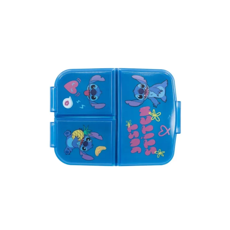 Y es que si por algo destaca esta fiambrera es por su diseño, con tres compartimentos, cada uno con su propia tapa, y con los dibujos de Stitch, su nombre y algunas cosillas más para hacer que sea una fiambrera chulísima. Mide aproximadamente 19,5×16,5×6,7 cm, cuenta con acabados de gran calidad, y está fabricada en plástico de gran calidad, libre de BPA.