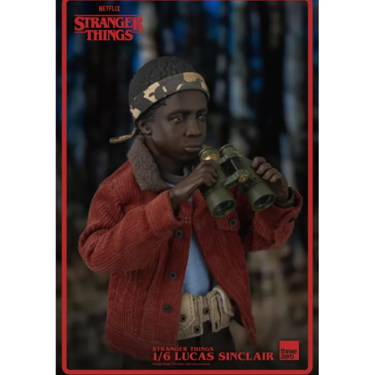 La figura escala 1/6 de Lucas Sinclair de Stranger Things es una verdadera joya de la colección de figuras de ThreeZero. Fabricada con materiales de alta calidad como ABS, PVC y POM, cuenta con una gran cantidad de detalles en su diseño que la hacen única y espectacular.