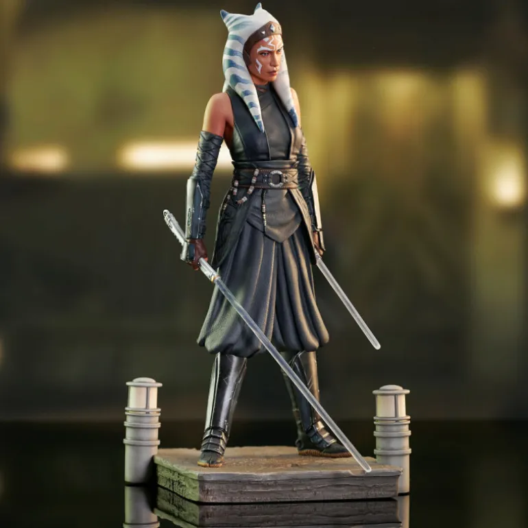 La calidad y atención al detalle de esta figura es simplemente impresionante. Cada rasgo de Ahsoka Tano, el querido personaje de Star Wars, ha sido recreado fielmente, desde su distintivo tocado hasta su vestimenta icónica. Cada línea y cada textura han sido cuidadosamente esculpidas y pintadas a mano, mostrando el nivel de maestría artesanal que Gentle Giant ha logrado alcanzar.