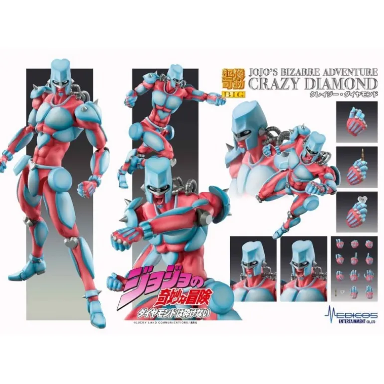 Descubre la figura articulada Crazy Diamond de 22 cm, inspirada en el famoso manga JoJo’s Bizarre Adventure. Fabricada por Medicos Entertainment, esta figura destaca por su impresionante diseño y colores vibrantes en azul y rojo. Sus articulaciones permiten una amplia gama de poses dinámicas, haciendo de esta figura un elemento esencial para cualquier colección.