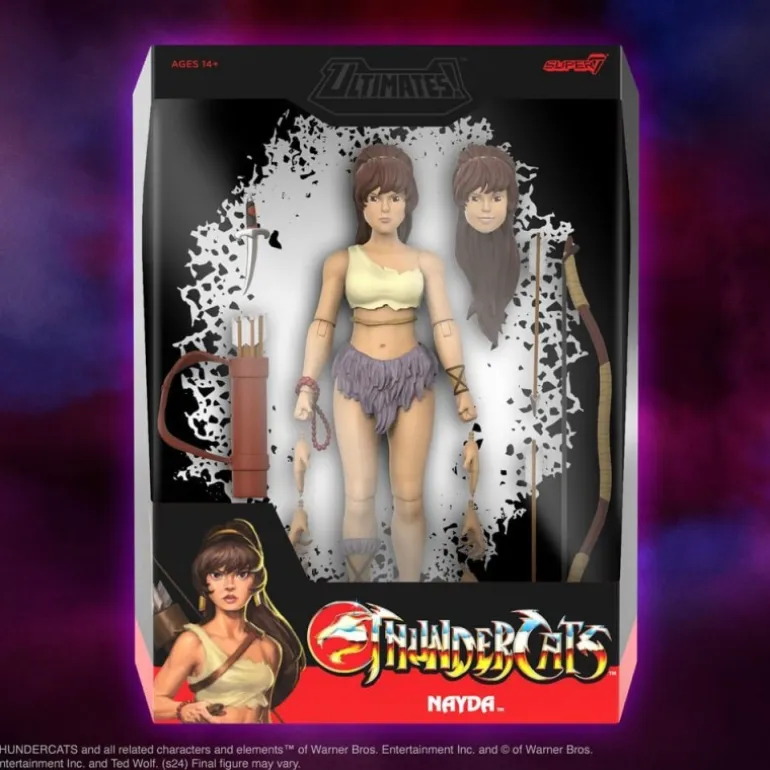 Descubre la increíble figura articulada de Nayda de los Thundercats, parte de la exclusiva línea Ultimates de Super7. Esta figura de 18 cm está meticulosamente diseñada para capturar todos los detalles del personaje, ofreciendo articulaciones para poses dinámicas. Viene acompañada de diversos accesorios, incluyendo un arco, flechas y una daga, así como manos intercambiables y un rostro alternativo.