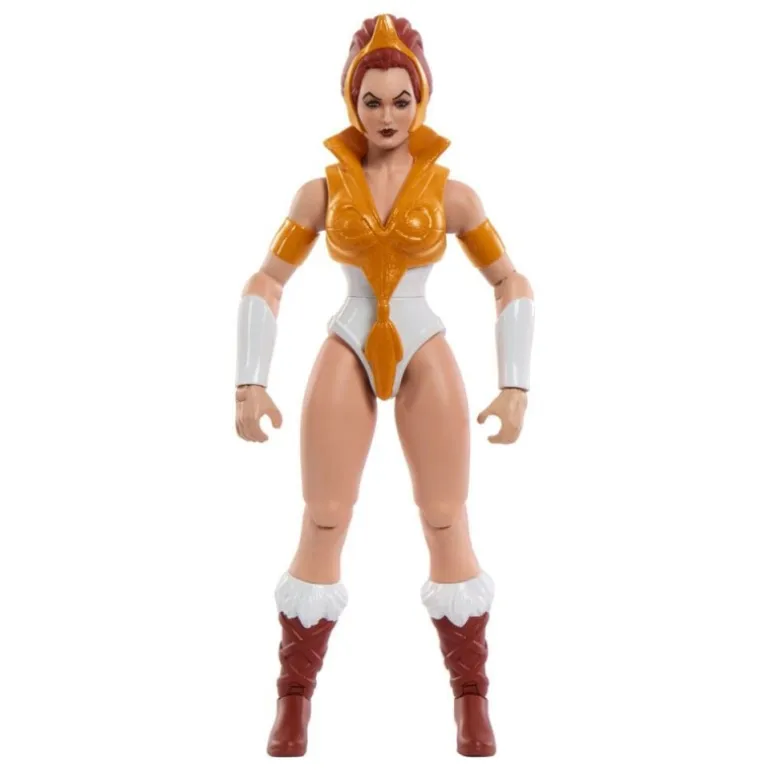 La figura articulada de Teela de 14 cm es una pieza imprescindible para los fans de los Masters of the Universe. Esta figura presenta a Teela con su característico traje en tonos naranja y blanco, detalladamente esculpido para capturar su esencia del universo animado. Mide aproximadamente 14 cm de altura y está completamente articulada, lo que permite recrear diversas poses de acción. Incluye accesorios como un escudo y una lanza, perfectos para completar sus icónicas batallas.