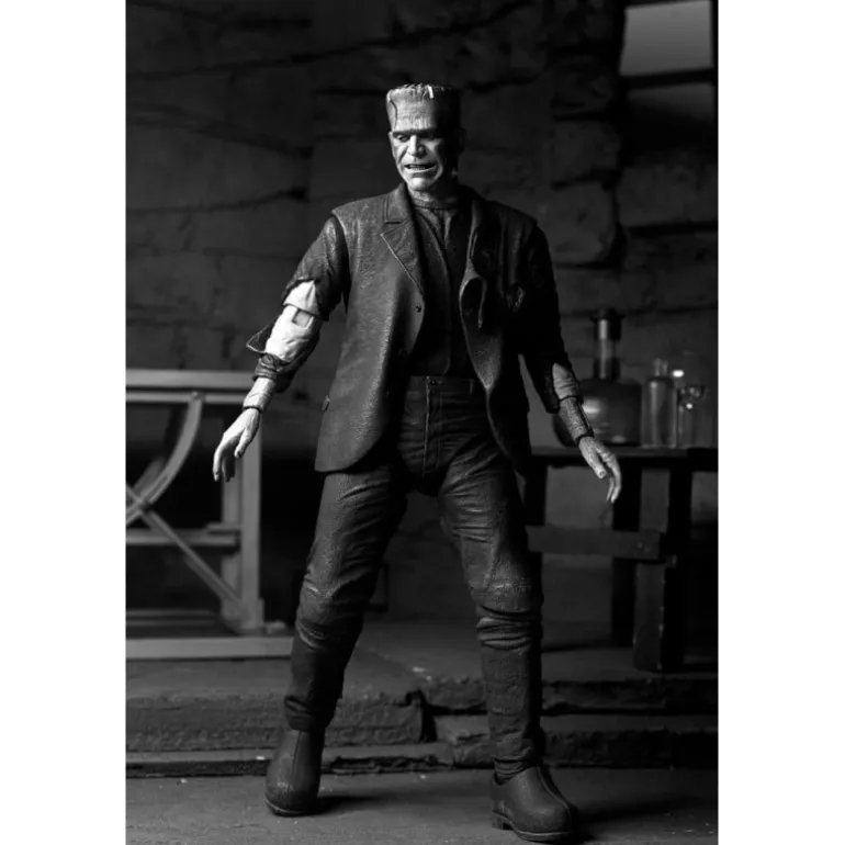 Descubre la figura articulada de Frankenstein de la línea «Universal Monsters» en su versión blanco y negro, un homenaje icónico a la clásica película de terror «La Novia de Frankenstein». Con un tamaño aproximado de 18 cm, esta figura está cuidadosamente diseñada por NECA, ofreciendo una representación auténtica y detallada del monstruo de Frankenstein.