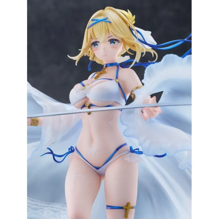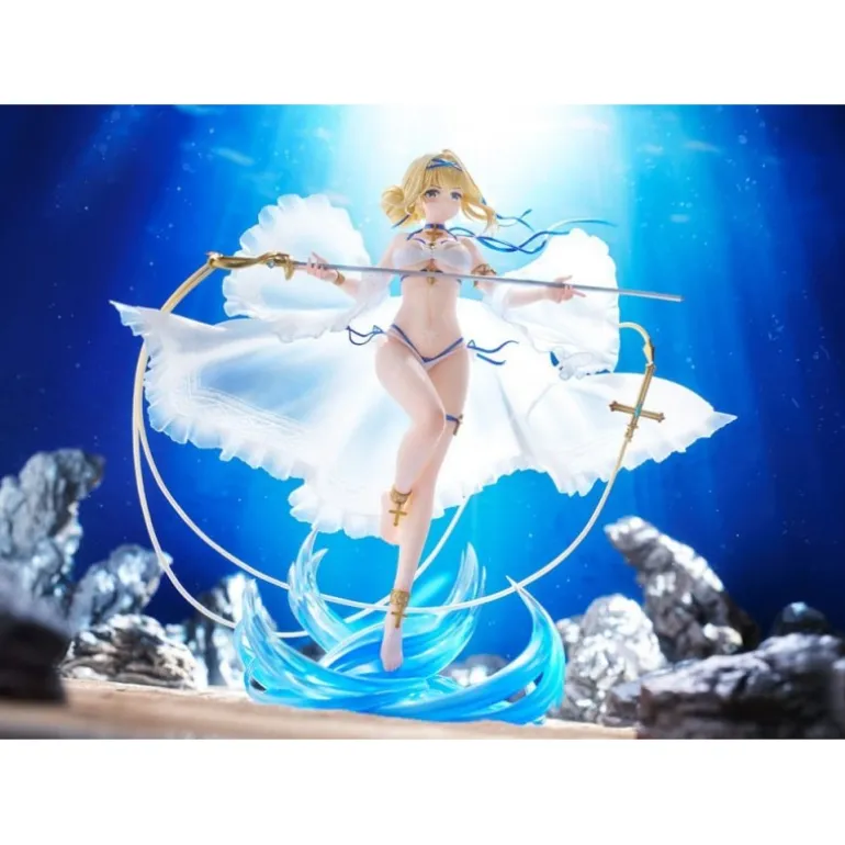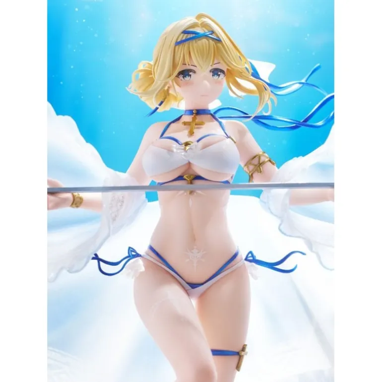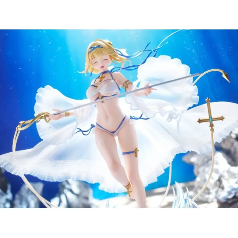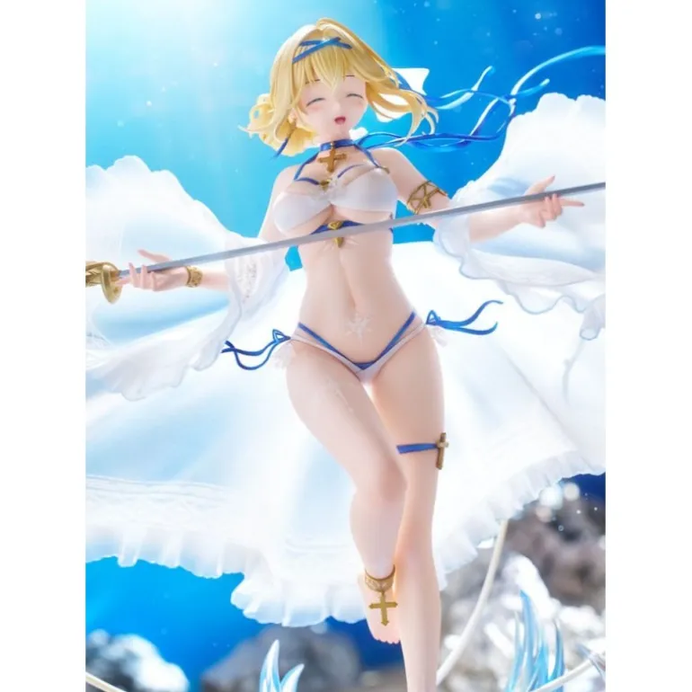 Descubre la exquisita figura de Jeanne D’Arc, un tributo a la popular serie ‘Azur Lane’. Esta estatua de edición limitada de AmiAmi, fabricada por Aliceglint, captura a Jeanne en un momento etéreo, bañada por una luz que realza su traje blanco y su expresión placentera. Elaborada con detallado PVC, esta figura de 26 cm viene acompañada de una base azul que simula olas del mar, realzando el ambiente marítimo del personaje.