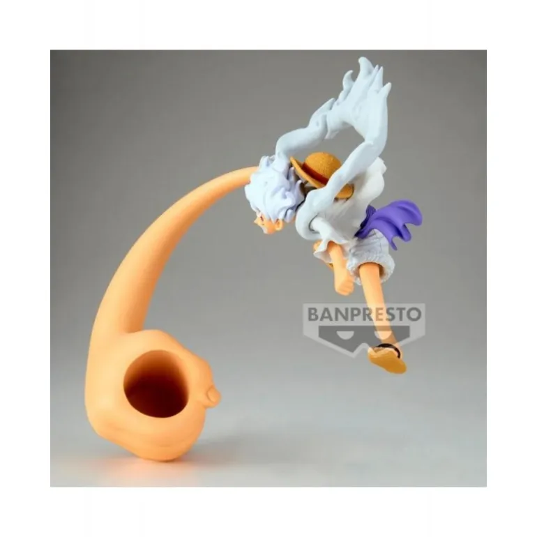 Descubre la figura de Monkey D. Luffy de Banpresto, parte de la colección One Piece FL Gear5 Vol.4. Esta figura de PVC captura a Luffy en pleno ataque, destacando su característico cabello blanco y aura dinámica hecha de humo estilizado. Viste pantalones cortos blancos y una capa morada, mientras lanza un golpe con su brazo extendido en forma de puño gigante. Con una altura de 12 cm, incluye una base de soporte especial para exhibición segura.