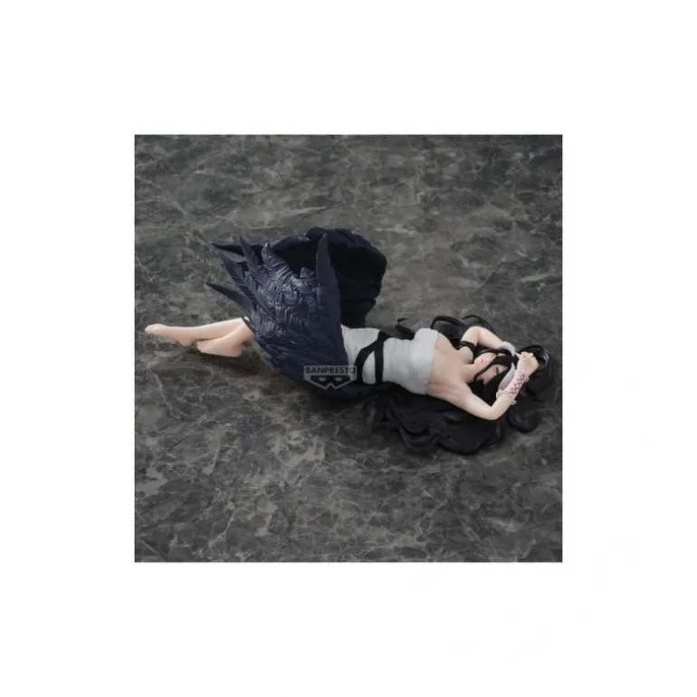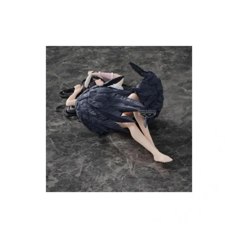Descubre la figura de Albedo de la serie Overlord, una pieza de colección diseñada por Banpresto en su línea Relax Time. Este cautivador diseño muestra a Albedo, la guardiana suprema, en una postura recostada que refleja su elegante serenidad. Sus alas negras desplegadas y el vendaje blanco crean un contraste visual impresionante, mientras que su cabello ondulado añade dinamismo a la figura.