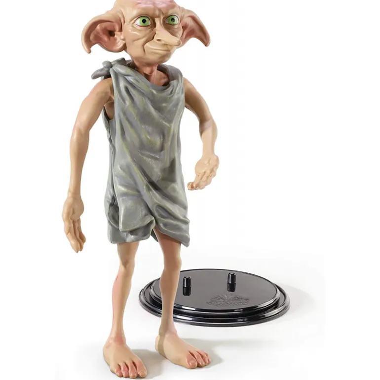 Se trata de una figura maleable de la serie BendyFigs, de unos 19 cm de altura, que reproduce a la perfección a Dobby, el elfo domestico más querido de Harry Potter, al que el propio Harry termina liberando para que no sirva más a los Malfoy. Una figura flexible con peana incluída, que podrás mover a tu gusto, fiel a la criatura original y con una cantidad detalles espectacular, desde los ojos saltones a las orejas picudas.