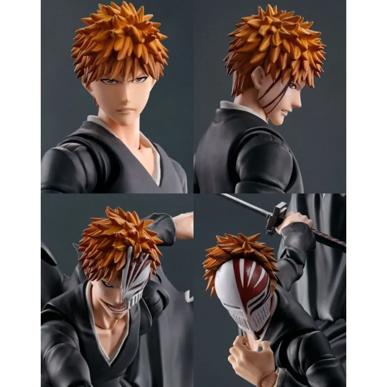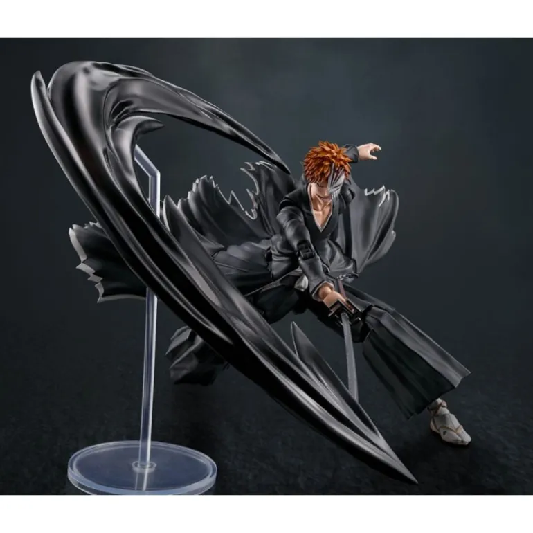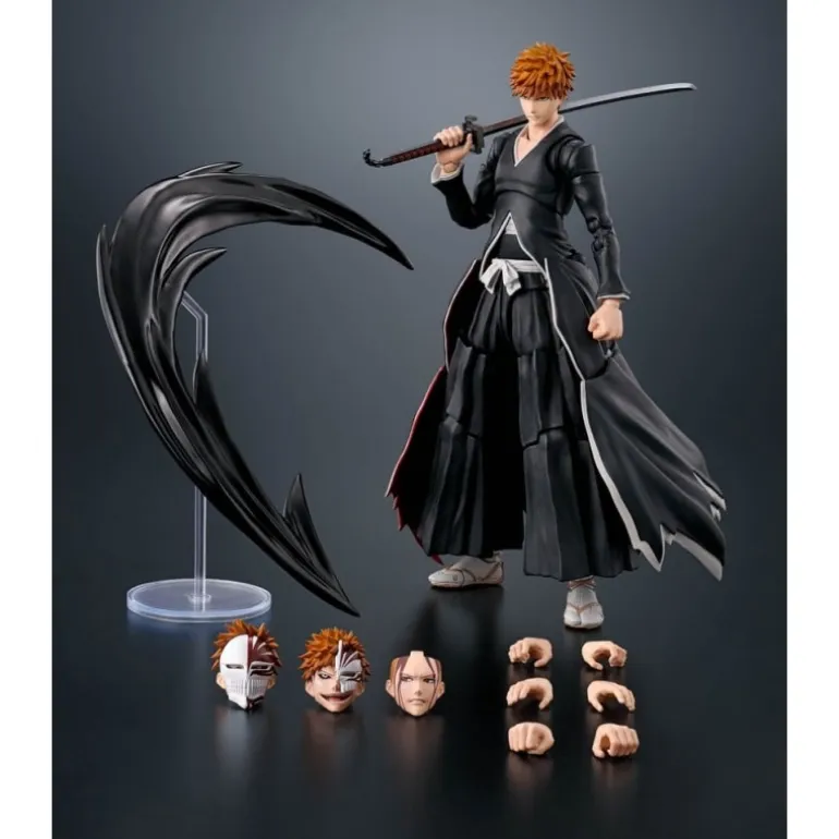 Descubre la figura articulada de Ichigo Kurosaki, protagonista de Bleach, perteneciente a la prestigiosa línea S.H. Figuarts. Esta pieza, de aproximadamente 16 cm de altura, captura con detalle la presencia y energía del personaje con su icónico vestuario negro con detalles en blanco y su característica espada. Incluye múltiples accesorios, como diferentes manos intercambiables y rostros, así como efectos de ataque que replican su famoso Getsugatensho.