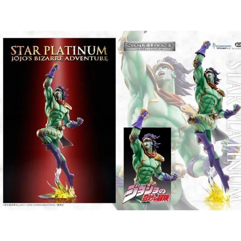 Descubre la figura de colección de Star Platinum de la prestigiosa línea «Statue Legend» de Medicos Entertainment. Esta figura captura al poderoso stand de Jotaro Kujo en una pose dinámica que realza su musculatura excepcional. Incluye una base con efectos especiales que elevan su presentación, convirtiéndola en una pieza de exhibición impresionante.