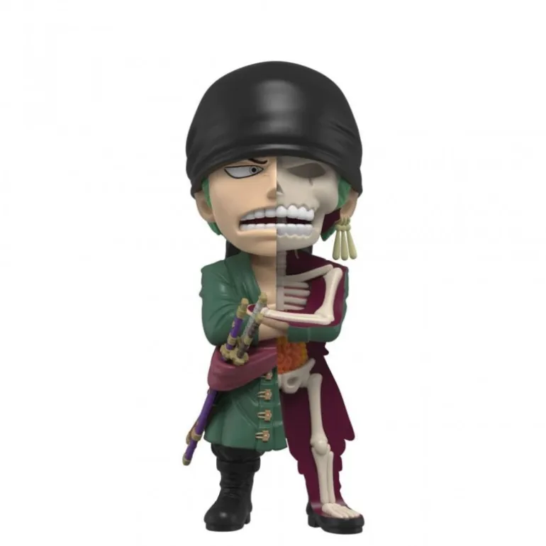 Descubre la Figura de Vinilo One Piece XXRAY FHD Wanted Zoro, una pieza única para los coleccionistas y fanáticos de la saga. Con un tamaño de aproximadamente 15 cm, esta figura captura a Zoro en un diseño exclusivo que muestra un corte transversal anatómico, destacando su rostro determinado y su porte característico. Fabricada por Mighty Jaxx, esta figura está creada con vinilo de alta calidad, asegurando durabilidad y un acabado impresionante.