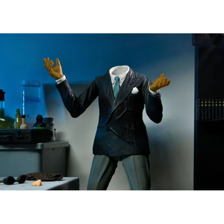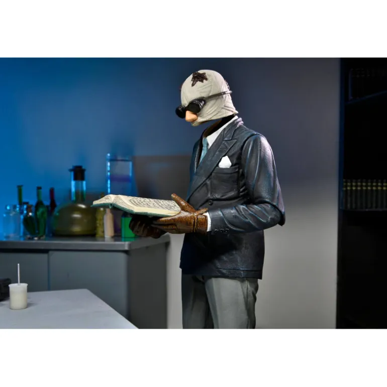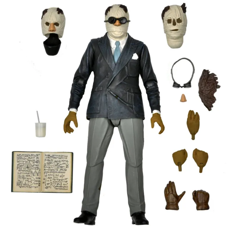 Una figura realizada por el aniversario 90º del cine de Universal, basado en la película de 1933 protagonizada por Claude Rains. Viene con cabeza intercambiable, manos, gafas, nariz, la peluca y la taza con pajita intercambiable. La figura es de 18 cm aproximadamente.
