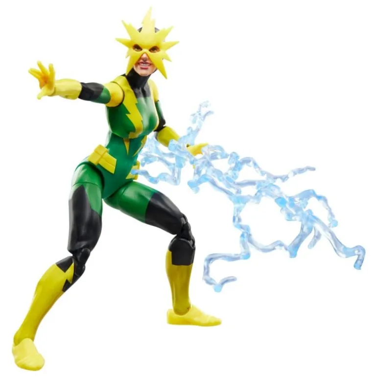¡Añade a tu colección la electrizante figura de Electro (Francine Frye) de la línea Marvel Legends de Hasbro! Con una escala de 15 cm, esta figura está meticulosamente diseñada para reflejar al personaje del universo Spider-Man. Presenta un traje en vibrantes colores verde y amarillo con detalles en negro, y una distintiva máscara con picos que emula un estallido eléctrico.