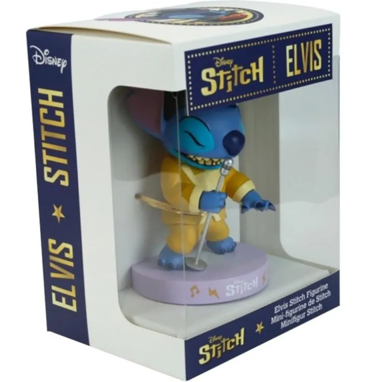 Además, viene cuidadosamente empaquetada en una caja decorativa que muestra el diseño inconfundible de Stitch como Elvis, ideal para coleccionistas.