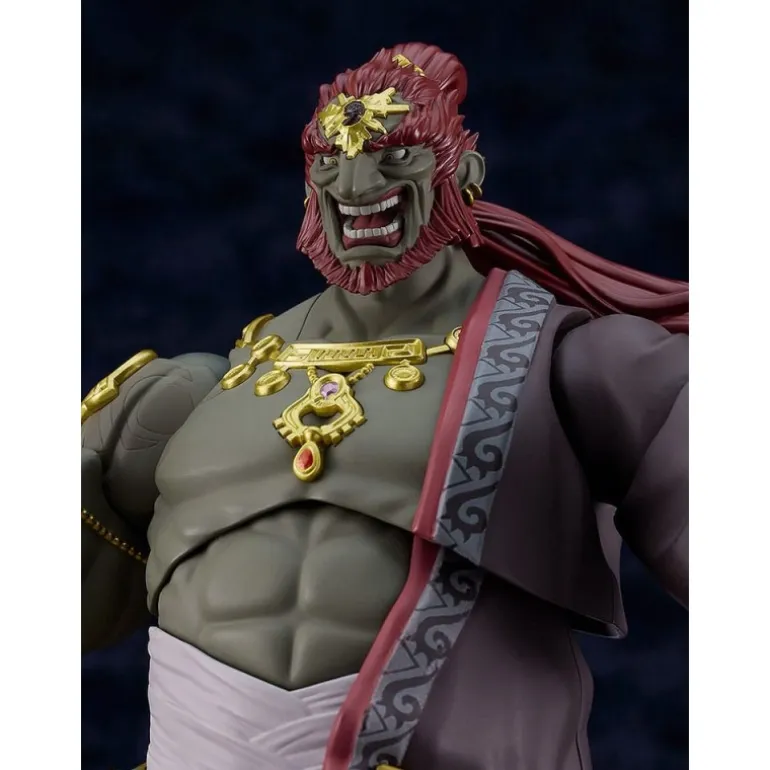 Descubre la impresionante figura articulada de Ganondorf de la línea Figma, inspirada en el videojuego ‘The Legend of Zelda: Tears of the Kingdom’. Esta figura de 19 cm captura a la perfección la esencia del legendario villano con un diseño meticuloso y altamente detallado. Ganondorf es presentado con un atuendo elaborado, adornado con joyas doradas y detalles en su ropa que evocan la estética del juego.