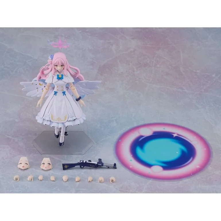 Descubre la exquisita figura Figma de Mika Misono de Blue Archive, con una altura de 14 cm. Fabricada por Max Factory, esta figura articulada destaca por su diseño detallado. Mika luce un vestido blanco con detalles en oro y azul, acompañado de unas magníficas alas. Su cabello rosa enmarca su rostro delicado, junto con un accesorio sobre su cabeza que añade un toque celestial. Viene con varios accesorios, incluyendo un arma, caras y manos intercambiables, y una base para exhibición. Todo presentado en una elegante caja con ventana.