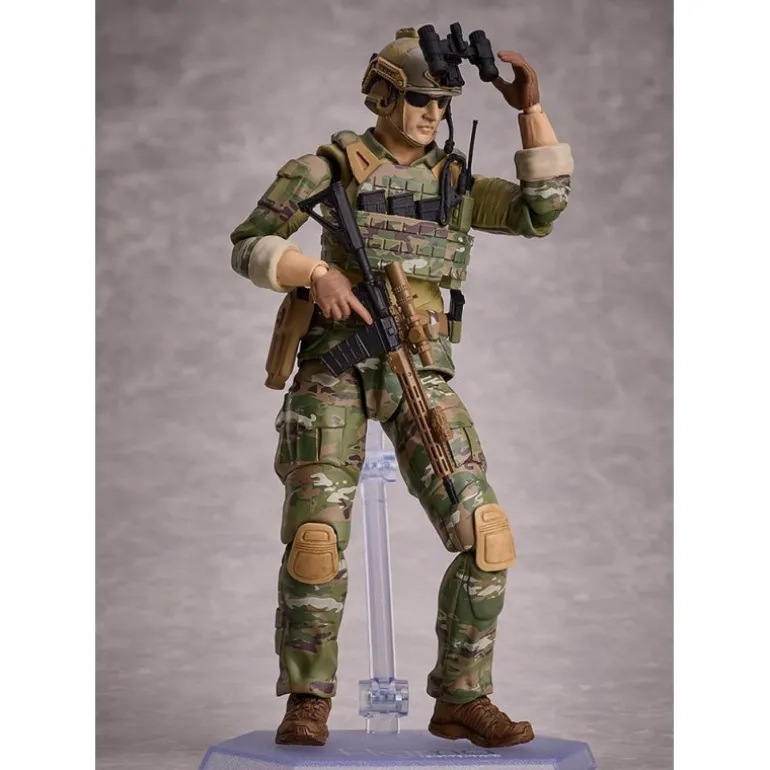 La figura Figma Special Forces Operator de la serie Little Armory es una impresionante representación de las fuerzas especiales en formato coleccionable. Mide aproximadamente 16 cm de altura y está meticulosamente detallada con un uniforme de camuflaje, rodilleras y casco. Fabricada por Tomytec, esta figura articulada permite una amplia variedad de poses.