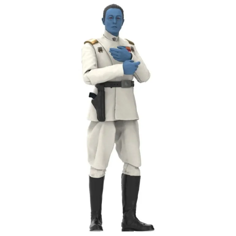 Descubre la magistral figura de Grand Admiral Thrawn de Star Wars: Ahsoka, parte de la renombrada línea Black Series de Hasbro. Esta figura de acción, que mide 15 cm de altura, captura con precisión los detalles característicos del personaje, desde su distintivo tono de piel azul hasta su uniforme impecable en color blanco, complementado con hombreras doradas y botas altas negras.