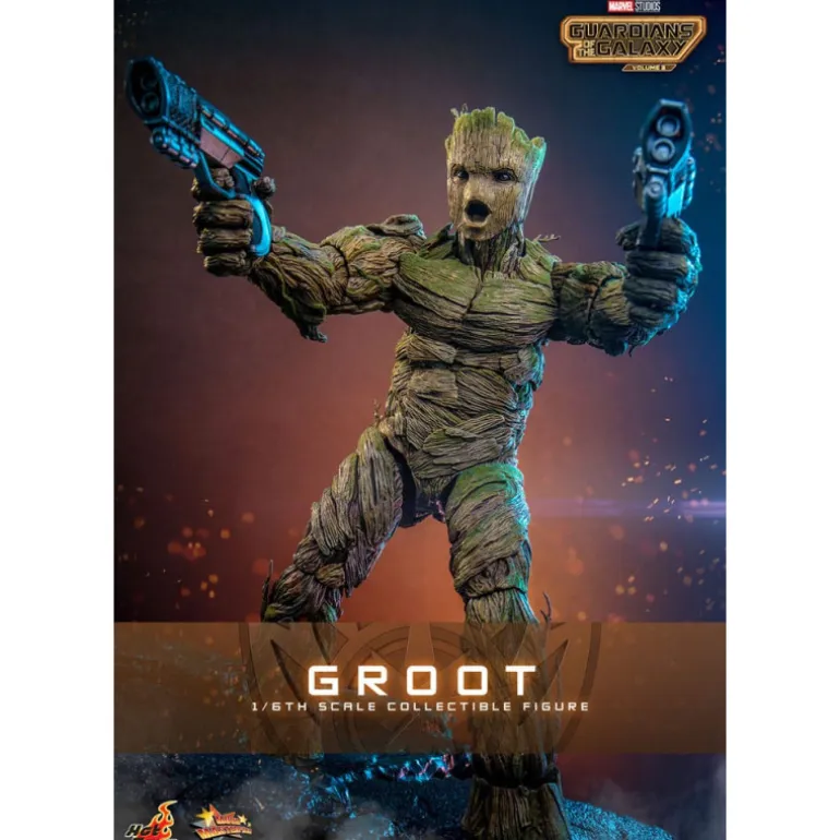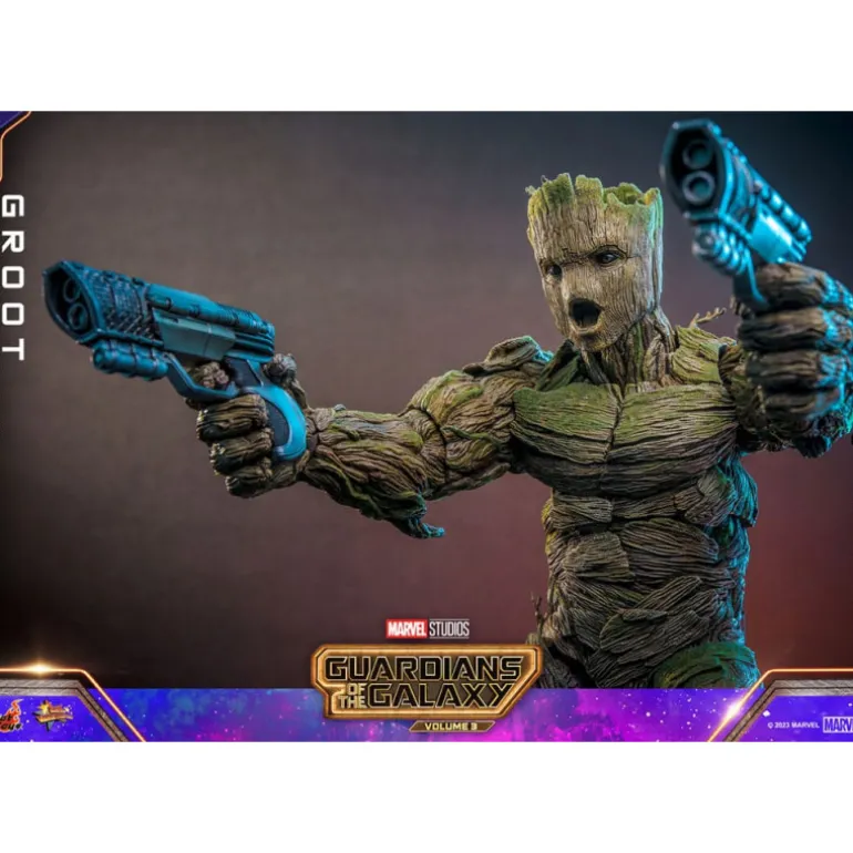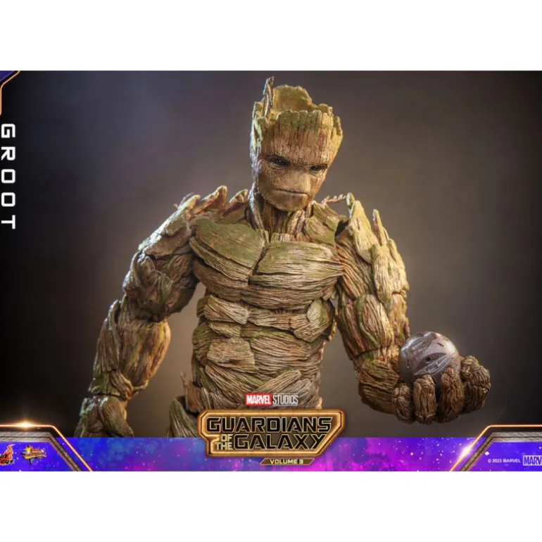 La figura Groot Guardianes de la Galaxia vol. 3 de 32 cm es un producto fabricado por Hot Toys, conocido por su excelente calidad y atención al detalle en sus productos. Esta figura articulada de Groot, el entrañable personaje de la película «Guardianes de la Galaxia vol. 3«, está a escala 1/6 y tiene un tamaño aproximado de 32 cm.